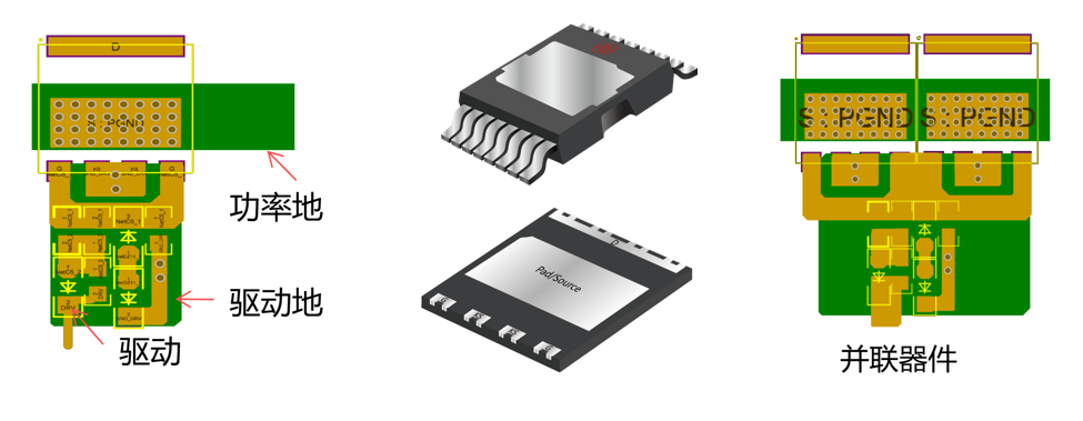 多個(gè)器件并聯(lián)使用時(shí),便于布局驅(qū)動的對稱。大大降低電磁兼容處理的難度。